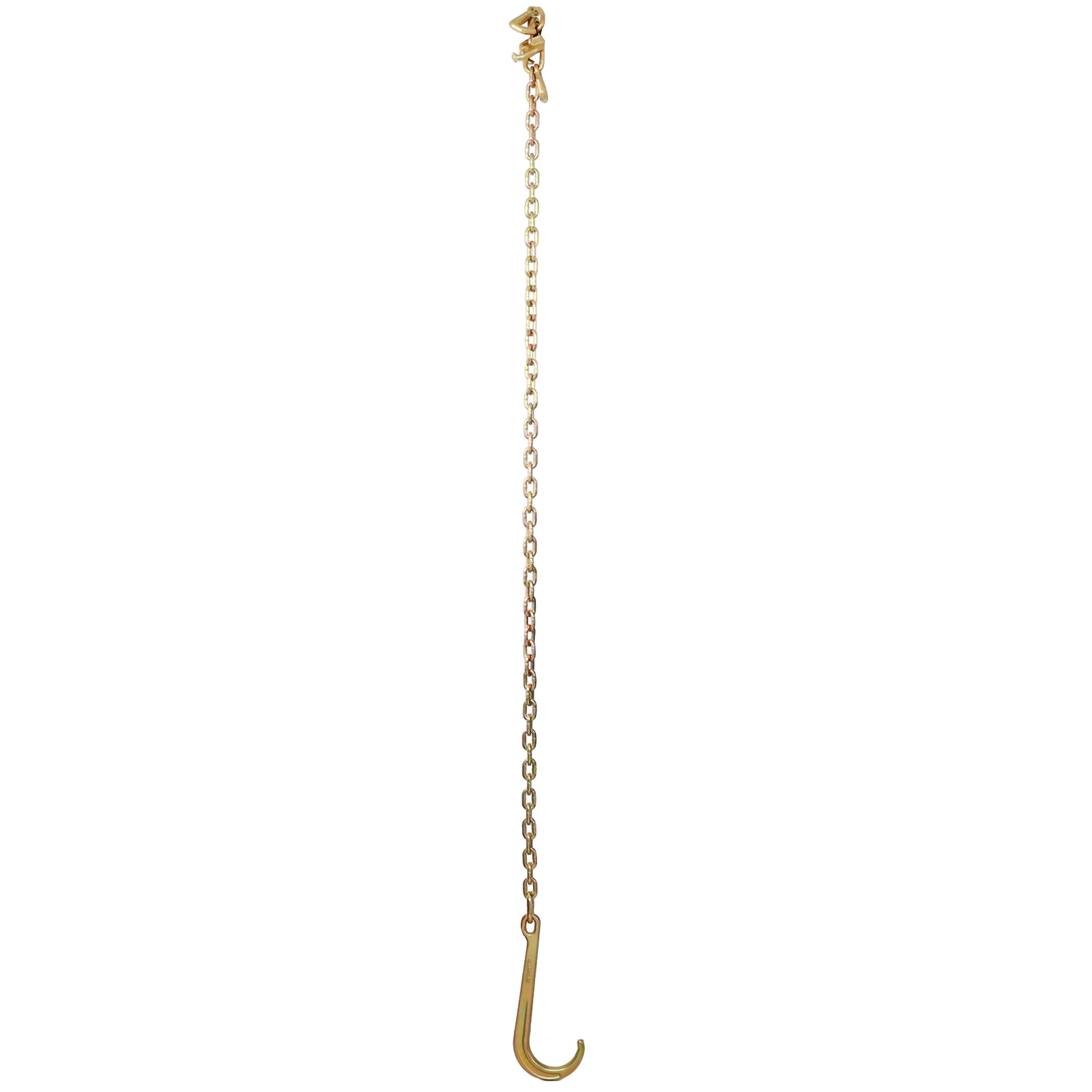 Heavy-duty G70 tow chain built for reliable vehicle recovery and towing. This 2-piece set features 5/16-inch x 6-foot chains with long shank J-hooks, RTJ cluster hooks, and grab hooks, rated for 4700 lbs working load limit.